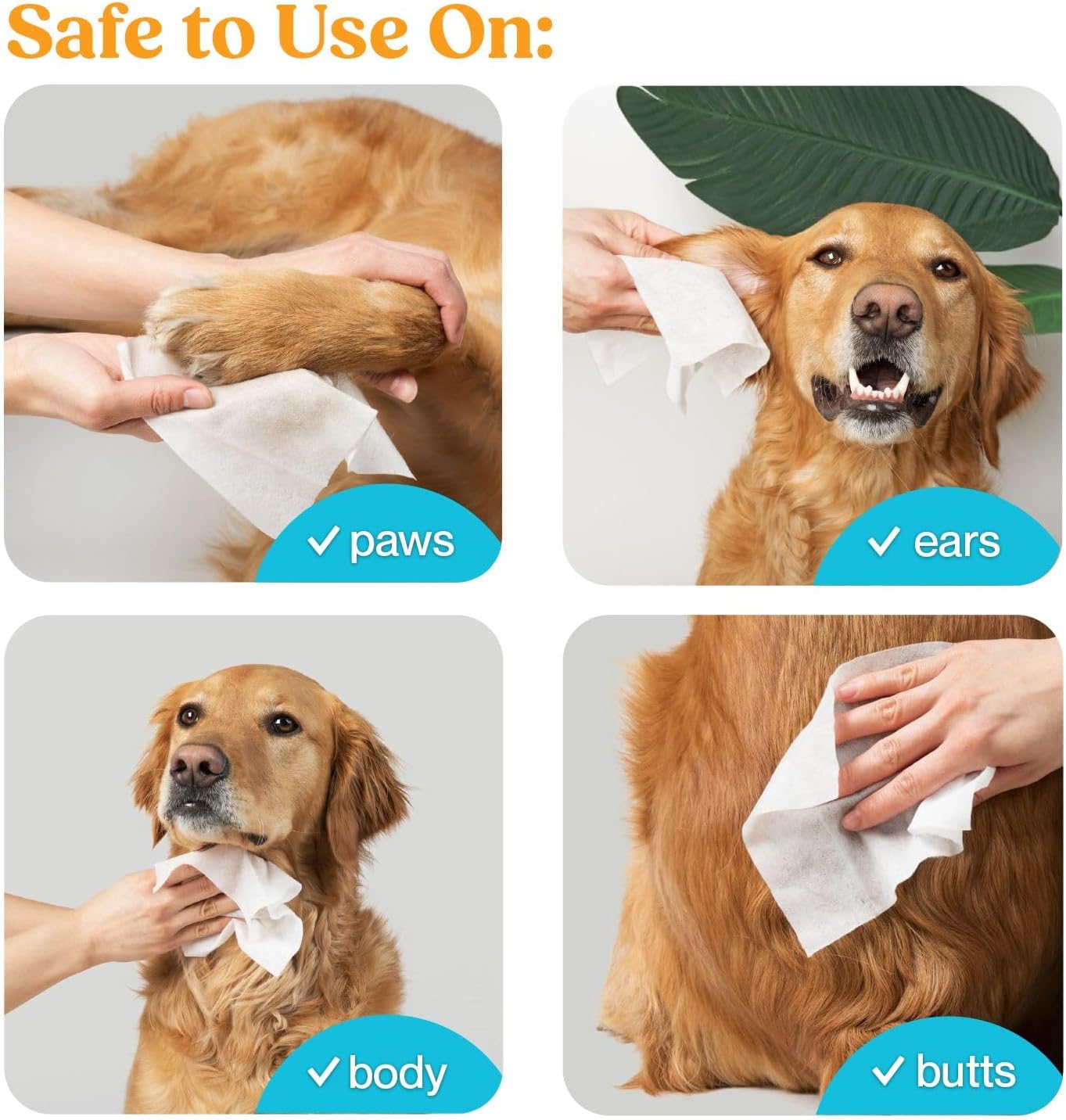 Pet grooming wipes are used to clean and freshen up your pet's coat, paws, and other body parts between baths. They can help remove dirt, dander, and light odors.