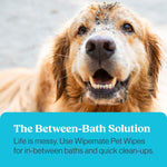 While pet grooming wipes are convenient for quick clean-ups, and can stretch the time between baths, they should not replace regular baths with pet shampoo. Baths are necessary for deep cleaning and maintaining your pet's skin and coat health.